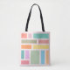 En minimalistisk modern geometrisk konst av abstrakt med rektangulära block i pastellform färg på en ljusbeige bakgrund.