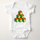 En enkel geometrisk pyramid med sex block med ansikte i tre olika färg.