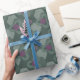 En lila geometrisk blommigt som är inställd på gröntens bakgrund.