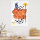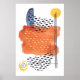 Moderna vattenfärgsformer och prickar med orange, gult och marint blått färg och svarta linjer som ritas ut. Väggkonst som är Perfekt för det moderna hemmet eller kontoret! Version 9 Annan poster tillgänglig som matchar det här temat.