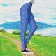 Dam Leggings i ett geometriskt mönster i turkos och blått. Primärt färg är turkos, mörk och ljusblått.