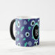 Kaffe mugg med geometriska former och prickar, blå och turkoshajer