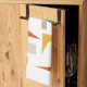 Lägg till ett färg-propp i köket med funkyns hörn och rektanglar mitt sekel med modern kökshandduk. Den har det skarpa och feta färgen tealblått, rött, orange och tan.