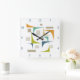 Lägg till ett färg-klot i väggen med den här funkyns moderna klocka! Den har det skarpa och feta färgen av turkos, blått, oliv grönt, orange och statiska geometriska former, tillsammans med matchande blå tal.