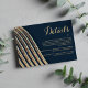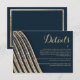 Elegant stilren modern geometrisk marinblå, teal och guld glitter lyx Detaljer kort. Ett lyxigt guld glitter stilrent detaljerat kort anpassat bröllopsinbjudan är perfekt för alla klassiska och sofistikerade glamourflickor. Denna design är perfekt för en trendig och stilren fest. Anpassa denna design med ditt eget meddelande och personliga information. Alla mönster är tryckta.
