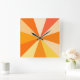 Den här höftledrivna, retro 60-inspirerade popkonsfackklockan har psykedeliska orangar/solsprängningar som skjuter ut i ett geometriskt mönster. Det finns tolv strålar att märka på tiden - det finns inget behov av nummer på den här funkyn, minimalistisk, ultramod klocka. Det är groovy, baby.