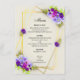 En geometrisk utformning av eleganten med rutor för lila, blått och fuchsia. Den här menyn är en del av en komplett bröllopsinbjudan.