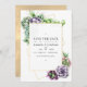 Trendig sukkulent bröllopsinbjudan med guldgeometrisk ram och elegant typografi. Perfekt för alla teman eller trädgårdsbröllop. Fotot på baksidan är valfritt.