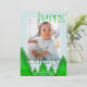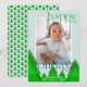 Önska God Jul på ett ljust modernt sätt med detta geometriska julkortet med träd. Ditt foto är inramat i en vit kant på en blek isblå bakgrund. En vinter skog av träd med sammanblandade nyanser av grönt ger en unik detalj. Festlig bokstavsform med utsmyckningar bidrar till det karakteristiska utseendet. Anpassa med ett kort meddelande och era namn, samt året. Baksidan av kortet har ett träd mönster i en matchande färgskala.