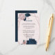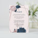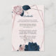 Elegantens rosa och marinblommor med vackert marinblått löv botaniskt geometriskt detaljerat djurutrymmeskort. På kortet är tillbaka: delikat dammig ro lever mot marinbakgrund. Uppgifterna om glitter simuleras