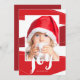 En contemporary med färg-block i rött och vitt innehåller ett handskrivet meddelande om glädje i detta moderna, formaterade fotokort för helgdag.