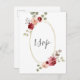 Bröllopets RSVP-kort har en geometrisk oval mittdel med burgunderfärgade blommor och eukalyptus.