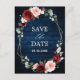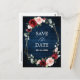 Elegant och modern romantisk geometrisk vattenfärgsfärgad blommigt bröllop spara datum-vykort har en bukett av burgundy/marsala, rosa, persikofärgad ro med motsvarande blad på marinblå rustik träbakgrund. Perfekt för fall/midsommar bröllop. Hitta fler matchande utformningar och variationer från min "blissweddingpaperie"-butik. Och kontakta mig gärna för ytterligare anpassning eller matchning av objekt