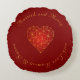 Geometriskt guld-rött hjärta kärlek rund kudde