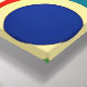 En sjudande abstrakt-arbetsyta med geometriska former i fet primärt färg, som skapar en balanserad och dynamisk fullt av energi och rytm i mönster.