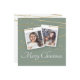 Ett mycket snyggt och modernt julkort Julhälsningar med två av dina egna foton på framsidan som hänger i fint vitt bild ramar på geometriskt gyllene tejp linjer. Med fina gula stjärnor på gröntens bakgrund.