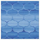Förreglande gegformer sträcker sig från mörk blått till ljusblå och baksida. Konturerna i den kontinuerliga S-kurvan flyttas från ljusblå till mörk blått och bakåt. De målade blå geometriska formerna har en tilltalande lugn. Färglinjerna ökar variationen i färger och visar strukturen på den vattenfärgsfärg som de ursprungligen tillverkades på.