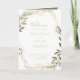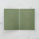 Detta geometriska guld-gröna vikta bröllopsprogram är perfekt för ett modernt bröllop. Utformningen har ett vackert geometriskt ram i guld med löv för grönt i elegant. Ta med ett citat- eller kort-meddelande, serviceordning, bröllopsfest och tack.