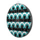 Geometrisk illustration av mönster med rand, cirklar och runda former i turkos, svart och vitt färger