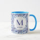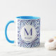 Geometriskt mönster för för anpassadeblått och vit mugg