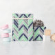 Ett modernt geometriskt mönster med ettfärgat herringbonesparremönster tonar in av blått och mintgrönt.