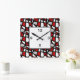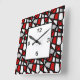Geometriskt mönster för röd gråttsvart fyrkantig klocka