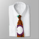 Denna slips har en geometrisk utformning av cirklar av olika färg och linjer kommer ut.