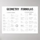 Poster en storlek lista över geometriska formler som innehåller cirklar, fyrkanter, trianglar, ellips, cirkelsektorer, parallellogram, annullus, trapezoid, polygon, kuber, koner, pyramider, sphere, torus, tetrahedron.