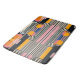 Art Deco och Bauhaus-inspirerad estetik, med en strukturerad balans mellan lodrät rand och geometriska former. Blandningen av fet senapsprodukt, djup gult, mjuk rosa och svart skapar en stark kontrast, skapar den både modern och tidlös.