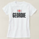 Denna t-skjorta visar den engelska flagga av St George i patriotiskt rött och vit, med ord "GEORDIE" som är skriftligt i svarten sätta en klocka på bokstäver.