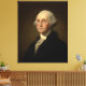 George Washington 1st American President av Stuart. Den 30 april, 1789, tog George Washington, som stod på förbundshallens balkong i Wall street i New York, sin ämbetsed som den första presidenten i Förenta Stater. "Som den första av varje sak, i vår situation, kommer att att upprätta en föregångare", skrev han till James Madison: "Det är djupt önskat från min sida att dessa prejudikat kan fastställas enligt sanna principer." - Born 1732 i en Virginia planter-familj, han lärde sig den moral, det sätt på vilket man kunde lära sig för en 1800-talsman. — Han hade två sammanflätade intressen: militär konst och western expansion. Vid 16 års tid hjälpte han till att undersöka Shenandoah-land för Thomas, Lord Fairfax. 1754 beställde han en överstelöjtnant som kämpade med de första skirmiserna av det som växte upp i Fransken och Indiska Krig. Nästa år, som assistent till general Edward Braddock, flydde han undan skada trots att fyra kulor tog hans jacka och två hästar sköts under honom. — Från 1759 till utbrottet av den amerikanska Revolutionen skötte Washington sina landområden kring berget Vernon och tjänstgjorde i Virginia House of Burgesses. Han gifte sig med en änka, Martha Dandridge Custis, han ägnade sig åt ett intensivt liv och lycklig. Men precis som sina planterare kände sig Washington utnyttjade av brittiska handlare och hindrad av brittiska bestämmelser. Eftersom grälet med mor land blev akut uttryckte han sitt måttliga men bestämda motstånd mot restriktionerna. — När den andra kontinentalkongressen samlades i Philadelphia i maj 1775 valdes Washington, en av Virginias delegater, till överbefälhavare för kontinentalarmén. Den 3 juli, 1775, i Cambridge, Massachusetts, tog han befälet över sina dåligt utbildade trupper och inledde ett krig som skulle pågå i sex år. — Han insåg för tidigt att den bästa strategin var att trakassera britterna. Han sa till kongressen: "Vi bör vid tillfällen undvika en allmän aktion, eller skicka något till Risque, om vi inte tvingas till det av nödvändighet, som vi aldrig bör dras in i." De följande striderna såg honom falla tillbaka långsamt, sen oväntat strejka. Slutligen tvingade han 1781 med hjälp av Fransk allierade att Cornwallis överlämnades i Yorktown. — Washington längtade efter att gå i pension till fält vid berget Vernon. Men han insåg snart att nationen enligt dess artiklar i edsförbundet inte fungerade väl, så han blev en huvuddrivkraft i de steg som ledde fram till konstitutionskonventet i Philadelphia 1787. När den nya konstitutionen ratificerades valde valkommissionen enhälligt Washingtons president. - Han bröt inte mot de befogenheter som han ansåg att konstitutionen gav kongressen. Men utrikespolitikens beslutsamhet blev i första hand en fråga för ordförandeskapet. När den Fransk Revolutionen ledde till ett stort krig mellan Frankrike och England vägrade Washington att helt och hållet acceptera rekommendationerna från antingen hans statssekreterare Thomas Jefferson, som var för Fransken, eller hans finansminister Alexander Hamilton, som var för britterna. Han insisterade snarare på en neutralt tills Stater kunde bli starkare. — Till hans besvikelse utvecklades två party i slutet av hans första mandatperiod. Han var rädd för politik, kände sig gammal och gick i pension i slutet av sin sekund. I Farewell Adress uppmanade han sina landsmän att avstå från överdriven party-anda och geografiska distinktioner. Han varnade för långsiktiga allianser. — Washington hade mindre än tre års pension på berget Vernon, eftersom han dog av en halsinfektion den 14 december 1799. I månader sörjde nationen honom.