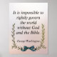 Denna poster har ett patriotiskt och religiösa citat av George Washington. - Det är omöjligt att med rätta styra världen utan Gud och Bibeln. Det finns en lagerkrans med en blå båge vid grund och som fortsätter upp på sidorna.
