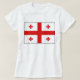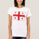 Framsidan av denna t-shirt visningar djärvt den georgiska flagga med dess utpräglade röda kor med fyra mindre kor på vit bakgrund. Detta motsvaras bakåt av ett attraktivt karta i Georgien.