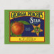 Vintage persikofrukt, låda-etikett för Georgia Peacher. Kluster av persikor och perfekt för alla från Georgien!