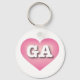 Denna nyckelring har ett rosa hjärta med ett vitt tvättat centrum som innehåller det feta, vita, övre fodral brev GA, officiellen förkortning för Georgien, persikostaten.