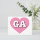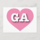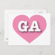 Detta vykort har ett dynamiskt hjärta för rosa som innehåller det feta, vita, övre fodral brev GA, förkortningen officiell för Georgien, persikostaten. Baksidan av vykortet är tom och väntar på dina handskrivna känslor eller anpassade texter.
