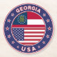 Georgiens märke med flagga av Georgien och flagga av USA färg, avrundat. Georgiens emblem. Georgiens försegling. Samling i USA Stater.