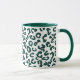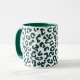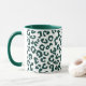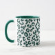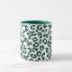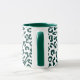 Kaffemugg i ett digitalt, minimalistiskt, djurtryck i ett gepardmönster - fläckar i djup tallgrön på vit bakgrund