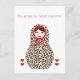 En livlig gepard matryoshka lyser med ett busigt grin, hennes smidiga gyllene päls täckt med djärva svarta fläckar. Tvärs över hennes framsida, det lekfulla Valentins meddelande “Du får mitt hjärta att ryta” rullar i glad bokstavsform. Omgiven av bubbliga tassavtryck och rosa stänk, är hon en snabb liten budbärare av kärlek med en stor katt personlighet.