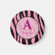 gepersonaliseerde magneet met je naam erop en je voorletter van je naam. zebraprint met roze en zwarte strepen
