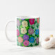Geranium Flowers Coffee Mugg. Handmålade och dragna geranblommor på ett kaffe mugg med djup grönt. Ljusstark och färglös design och en del av en samling.