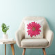 Lägg till en popup av färg med den här roligten Dekorativ kudde. En skarp rosa gerbera-daisy på en vit kudde är perfektens accent för ditt vardagsrum.