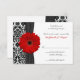 Texten på detta röda gerberakort med svart och vit damask svarskort eller RSVP-kort för bröllop är helt anpassningsbart. För att ändra det, använd alternativet "personifiera". För mer omfattande textändringar, till exempel ändringar av teckensnitt, teckensnittsfärg eller textlayout, använd alternativet "anpassa". Även om denna inbjudan för närvarande är anpassad som ett svarskort för bröllop, kan den också användas som ett mottagningskort, riktningskort och/eller boendekort. Det är verkligen upp till dig. Allt du behöver göra är att ändra texten. Färgerna på detta svarskort är rött, svart och vitt. OBS: Denna inbjudan är en platt tryckt design utan några 3D- eller upphöjda dekorationer.