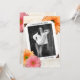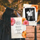 Gerbera tusenskönor foto examensfest inbjudan. Lägg till examenklassens foto på framsidan av denna grunge-stil, blomsterdesign, med anpassad text högst upp och längst ned på ramen. Inkludera hennes namn, klassår och festinformationstext på baksidan. Fler stora rosa och orange tusenskönor pryder baksidan.