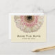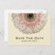 Ett bröllop spara datum postkort med en bild av en vit och rosa gerbera tusenskönor som tittar ut från toppen på framsidan. Anpassa texten på framsidan och baksidan.