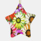 En bild av färgstarka gerberablommor i gult, lila och rosa. En sjudande blommigt av vackra trädgårdsblommor.