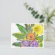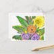 Gerbera-daisy frodig med starka färger och en glad skönhet. Gul: glädje. Små gula rosor, färgen representerar känslor av glädje och förtjusning. Ständigt gröna perenner Aspidistra elatior. En flerfärgad terrakotta vas.