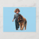 German shepard och pojke vykort