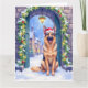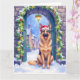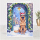 German Shepherd Snowy Town Gate Santa Christmas Kort