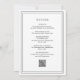 Klassiskt svart och vitt allt i en bröllopsinbjudan med en enkel och minimal design med ditt monogram överst och din händelseinformation omgiven av en dubbla gräns. Typsnitt alternerar mellan och elegant-skript, en traditionell serif och minimalist sans serif typsnitt. På baksidan finns dina gästuppgifter tillsammans med en valfri QR-kod (om du vill kan du ta bort QR-koden i designredigeringsverktyget i verktyg). Denna inbjudan är underbar för ett formellt bröllop.